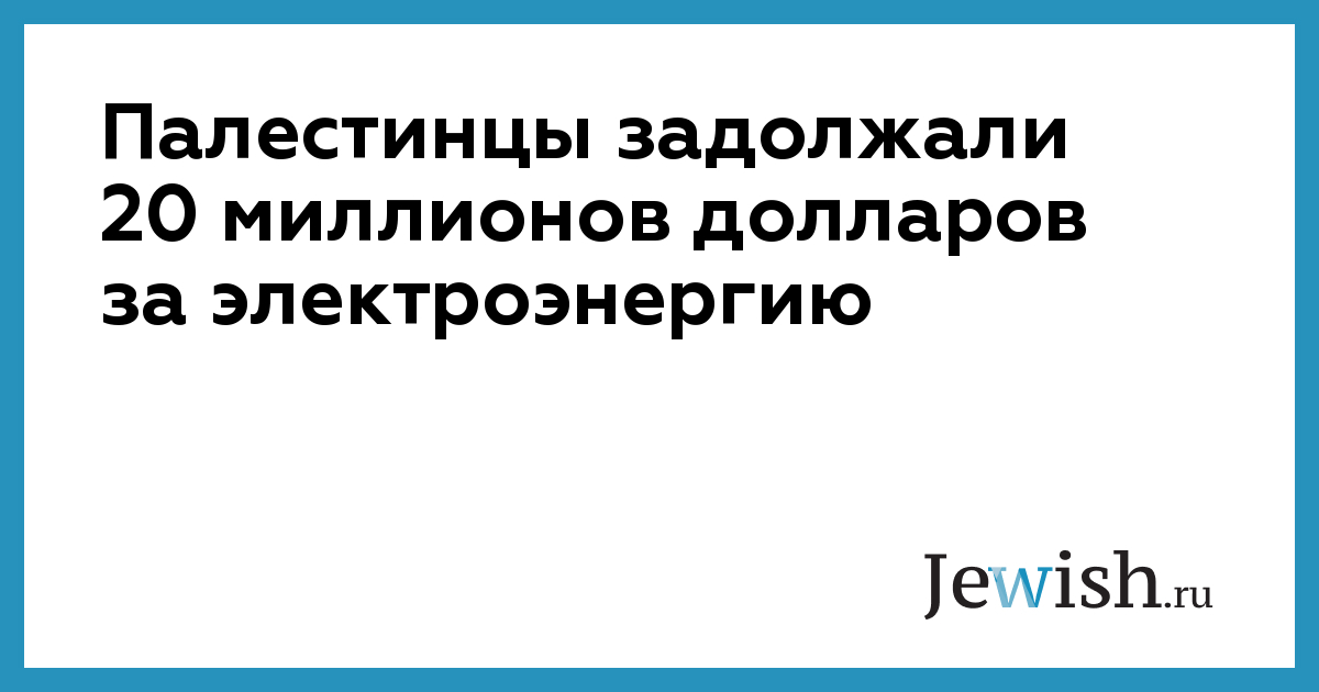 Палестинцы задолжали 20 миллионов долларов за электроэнергию