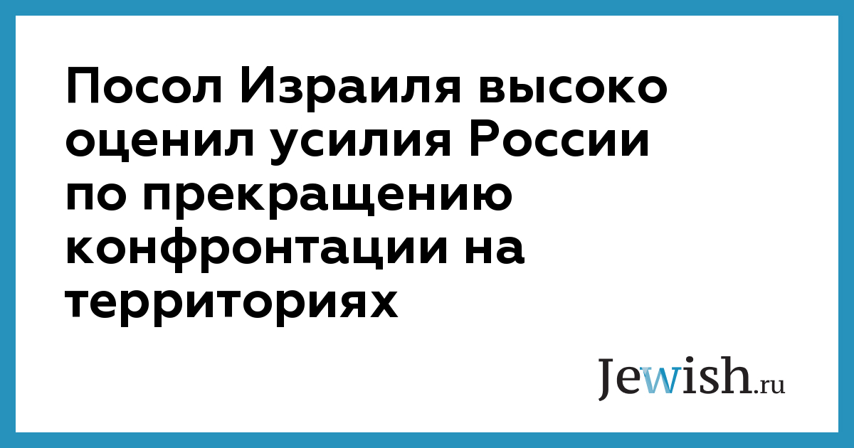 Посол Израиля высоко оценил усилия России по прекращению конфронтации на территориях