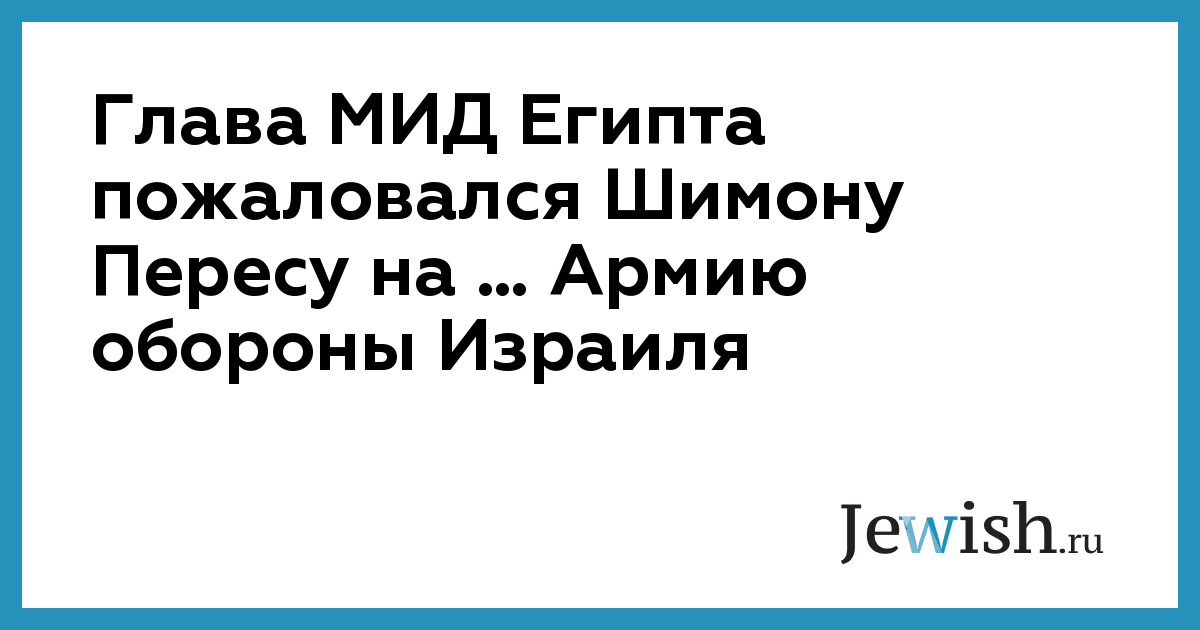 Глава МИД Египта пожаловался Шимону Пересу на … Армию обороны Израиля
