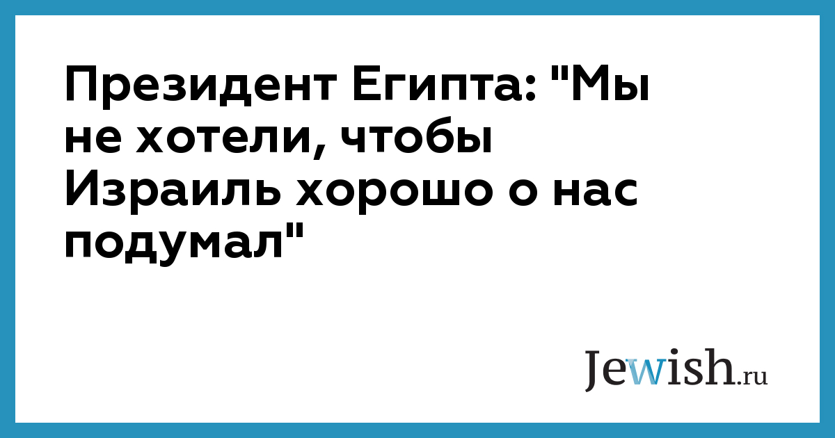 Президент Египта: "Мы не хотели, чтобы Израиль хорошо о нас подумал"