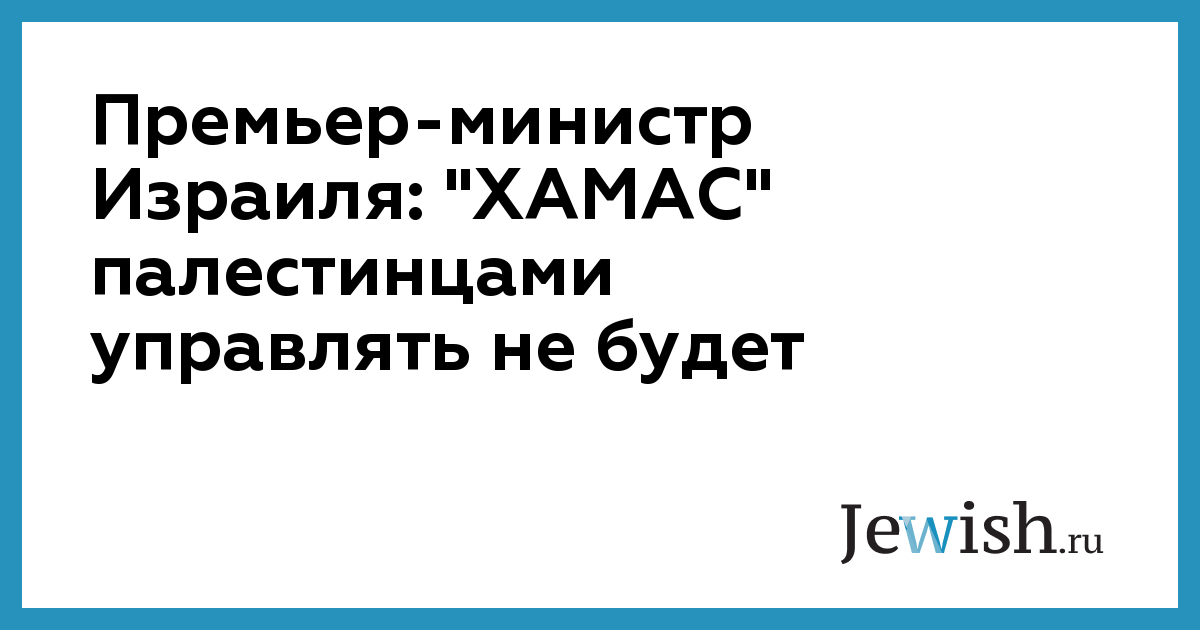 Премьер-министр Израиля: "ХАМАС" палестинцами управлять не будет