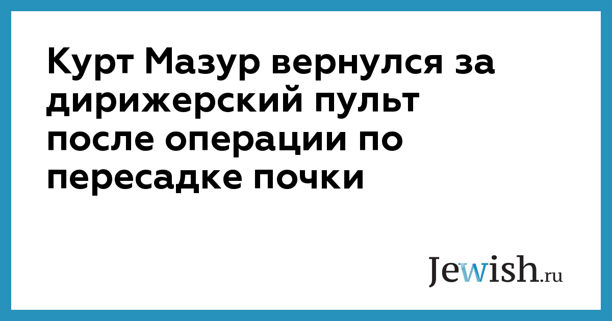 Курт Мазур вернулся за дирижерский пульт после операции по пересадке почки