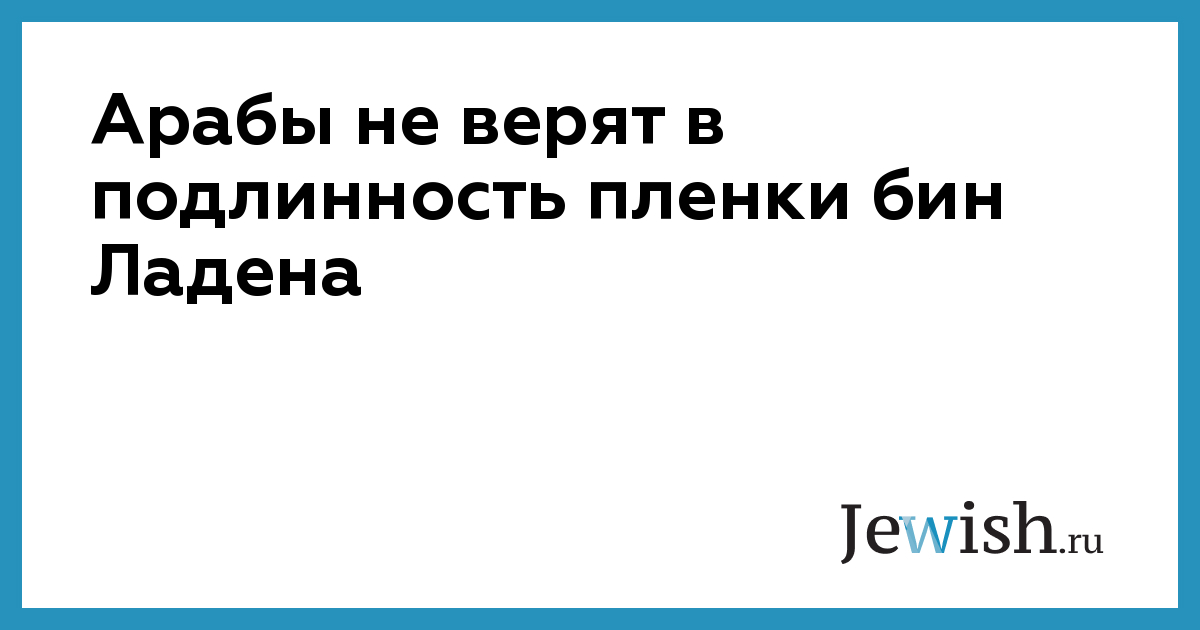 Арабы не верят в подлинность пленки бин Ладена
