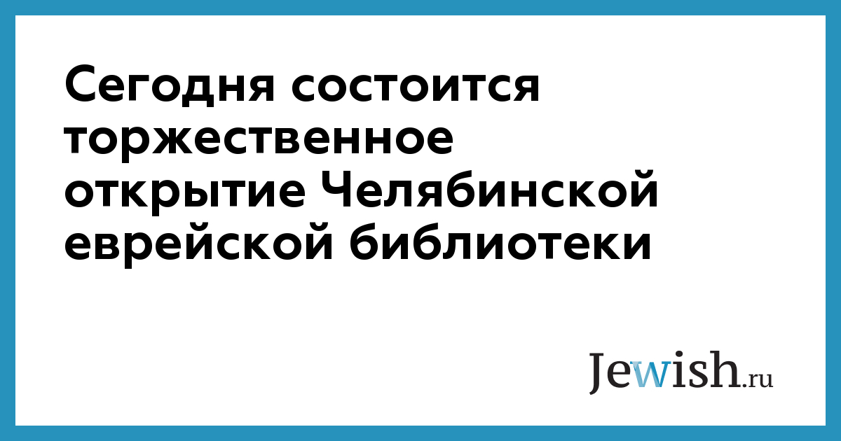 Сегодня состоится торжественное открытие Челябинской еврейской библиотеки