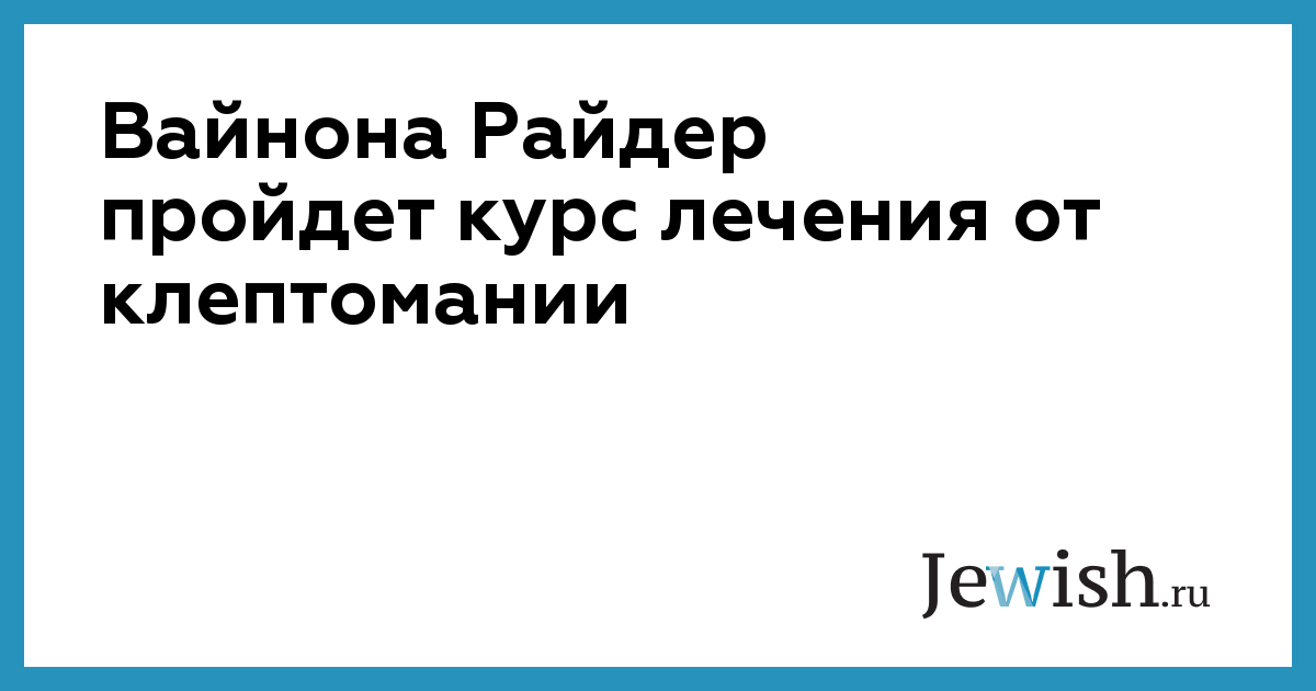 Друзья Вайноны Райдер говорят, что она собирается пройти курс лечения от клептомании, и уже обратилась за помощью специалистов частной медицинской клиники Promises в Малибу. В этом эксклюзивном лечебном заведении, где неделя пребывания стоит 20 тысяч долларов, звезды лечатся от пагубных пристрастий к алкоголю и наркотикам. Специалисты клиники берутся лечить и другие вредные привычки. Пациентами этого медицинского центра были Бен Аффлек, Роберт Дауни-младший и Чарли Шин.
