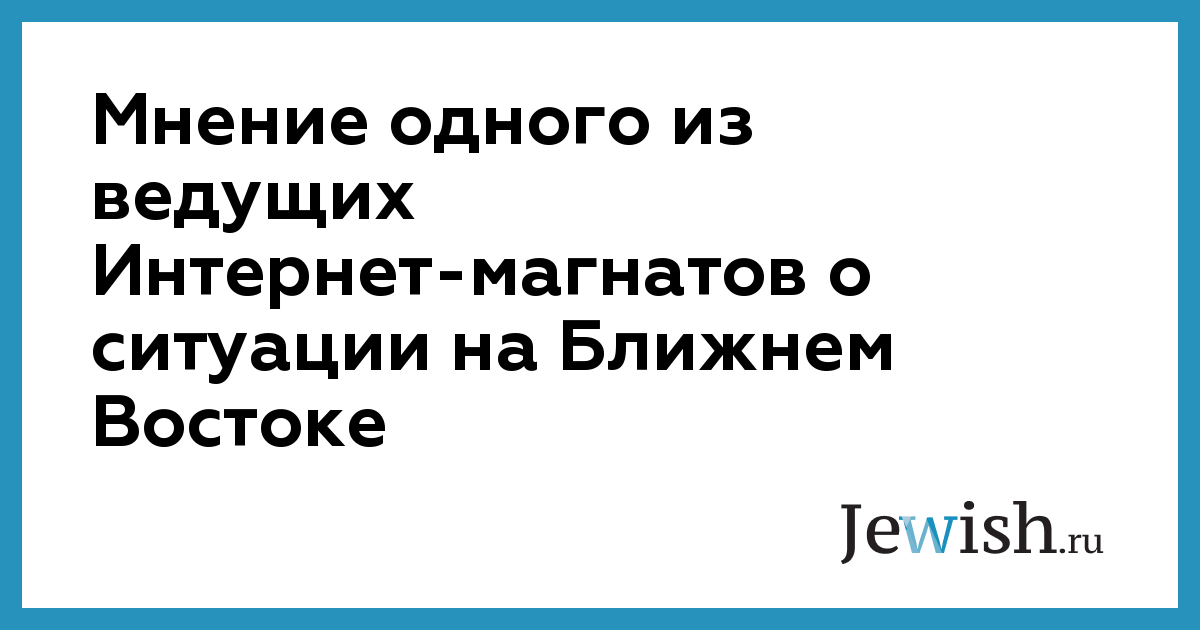 Мнение одного из ведущих Интернет-магнатов о ситуации на Ближнем Востоке