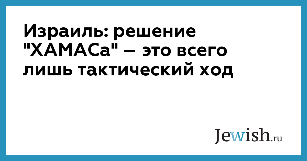 Израиль: решение "ХАМАСа" – это всего лишь тактический ход