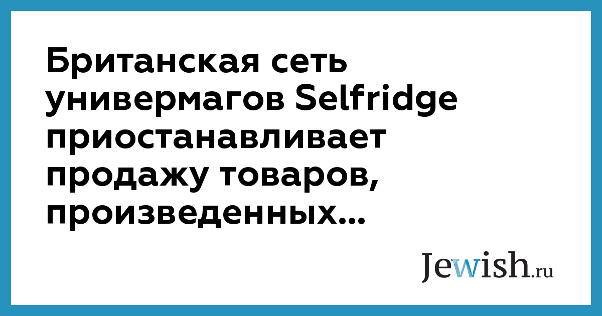 Британская сеть универмагов Selfridge приостанавливает продажу товаров, произведенных...