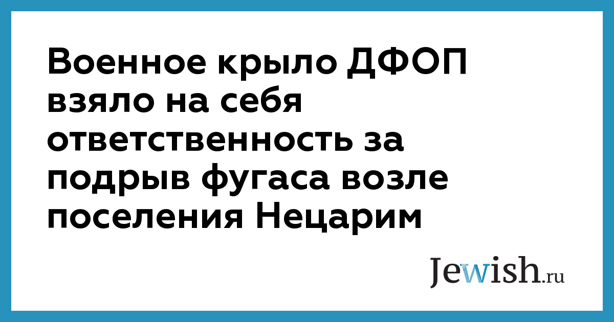 Военное крыло ДФОП взяло на себя ответственность за подрыв фугаса возле поселения Нецарим