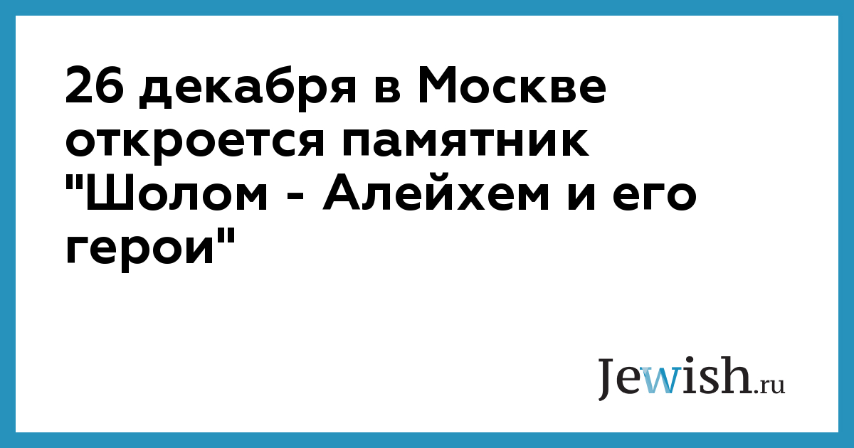 26 декабря в Москве откроется памятник "Шолом — Алейхем и его герои"