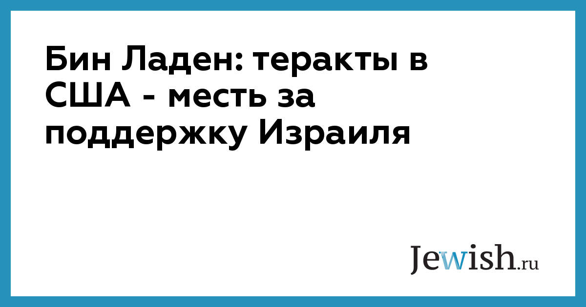 Бин Ладен: теракты в США — месть за поддержку Израиля