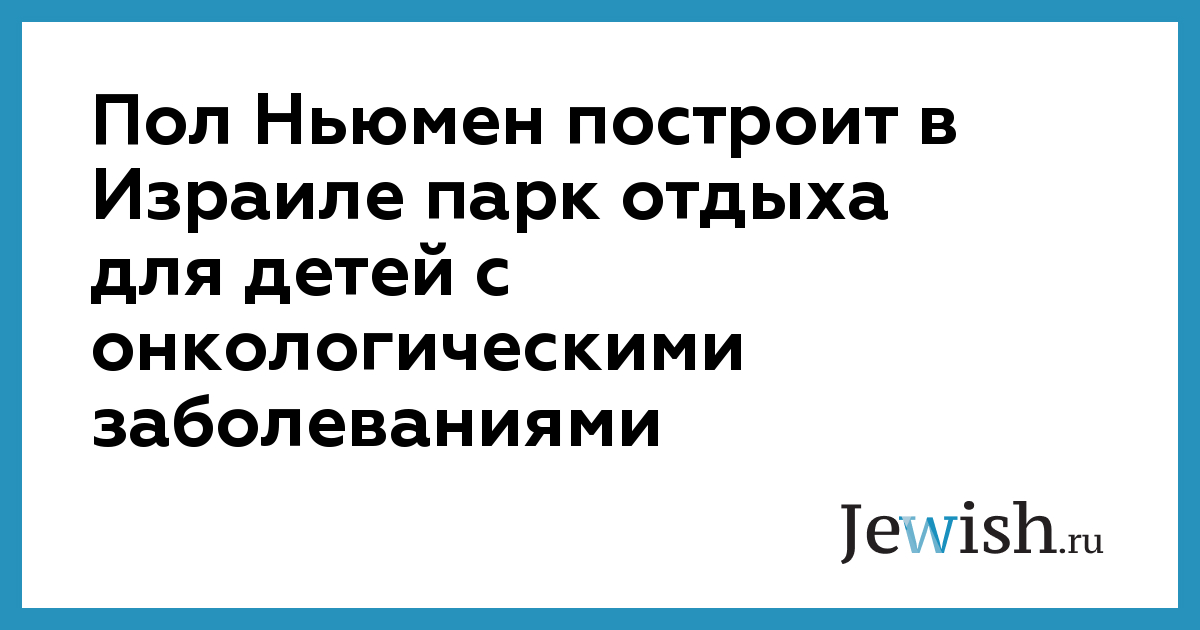 Пол Ньюмен построит в Израиле парк отдыха для детей с онкологическими заболеваниями