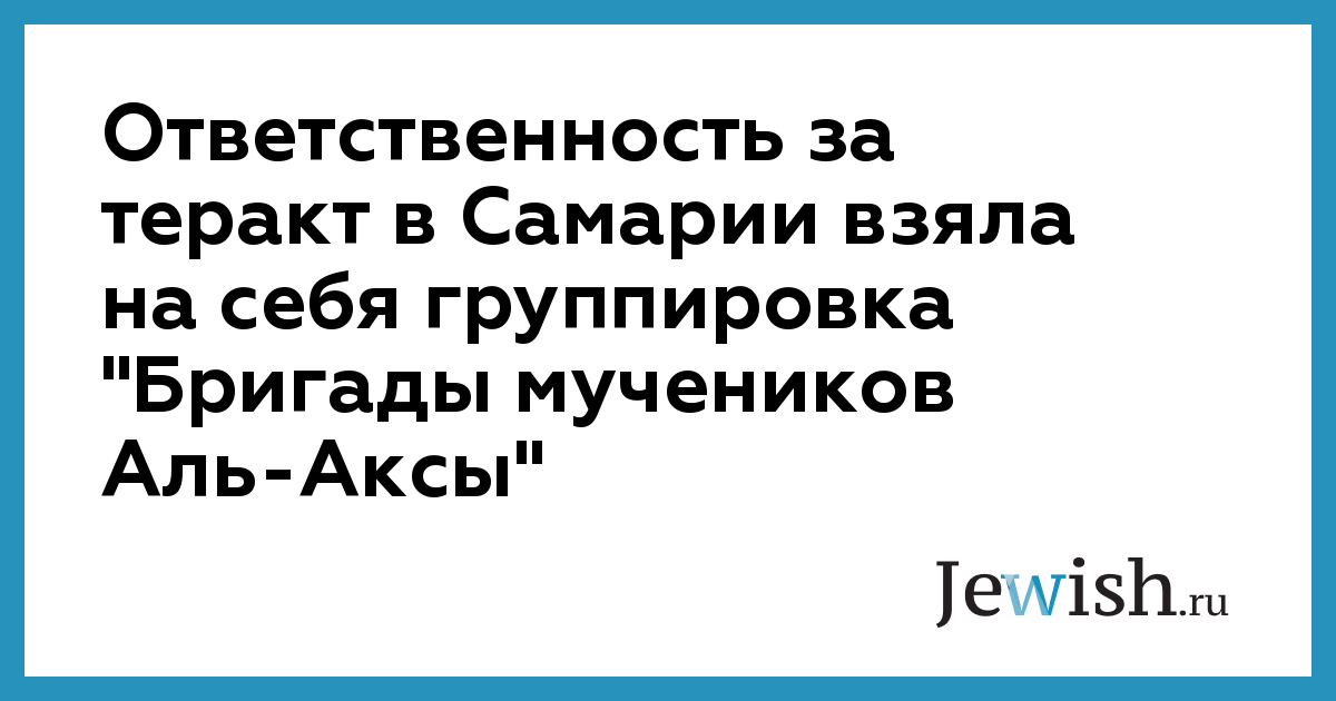 Ответственность за теракт в Самарии взяла на себя группировка "Бригады мучеников Аль-Аксы"