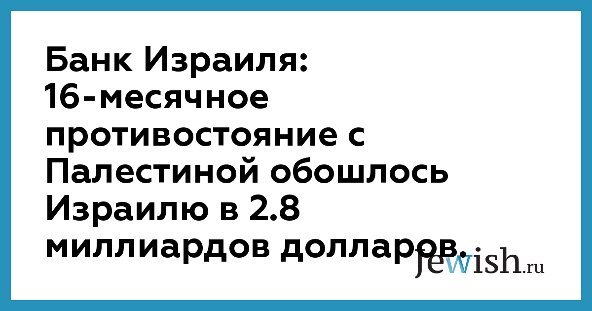Банк Израиля: 16-месячное противостояние с Палестиной обошлось Израилю в 2.8 миллиардов долларов.