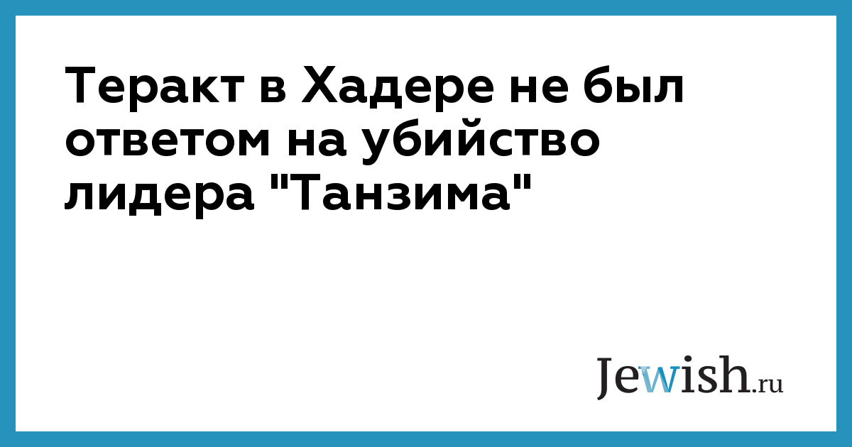 Теракт в Хадере не был ответом на убийство лидера "Танзима"