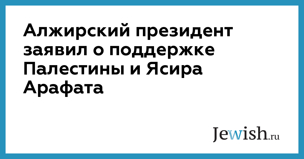 Как сообщило палестинское информационное агентство "Вафа", алжирский президент заявил об этом, принимая представителя Законодательного собрания /парламента/ ПНА, члена исполкома Движения освобождения Палестины /"Фатх"/ Хикма Бааляви.