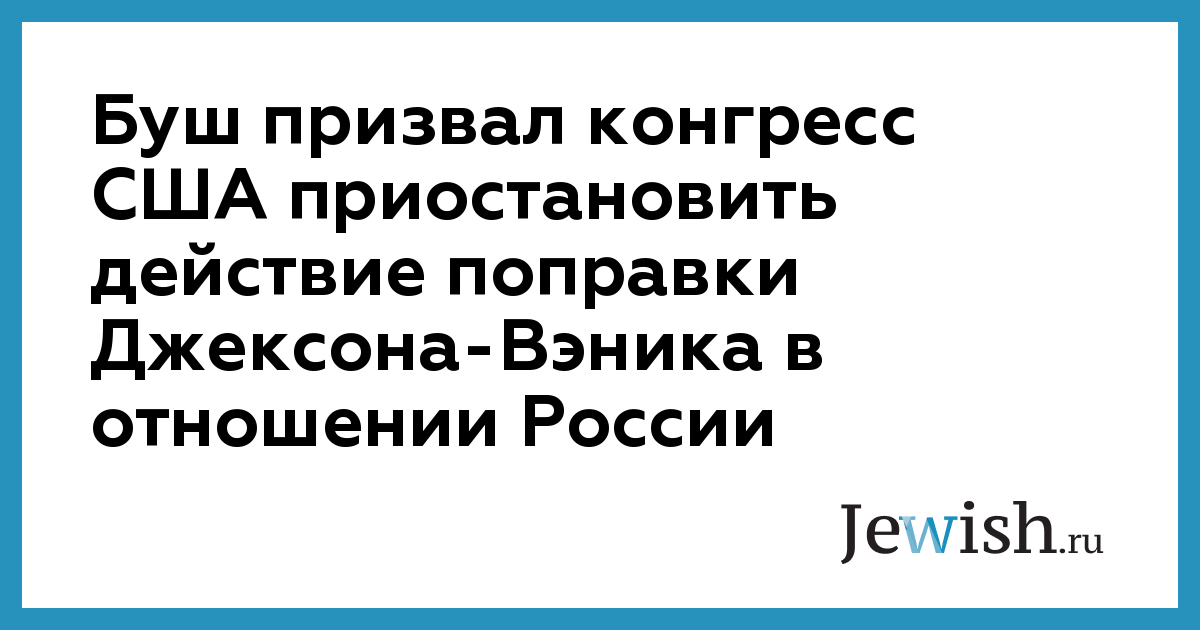 Буш призвал конгресс США приостановить действие поправки Джексона-Вэника в отношении России