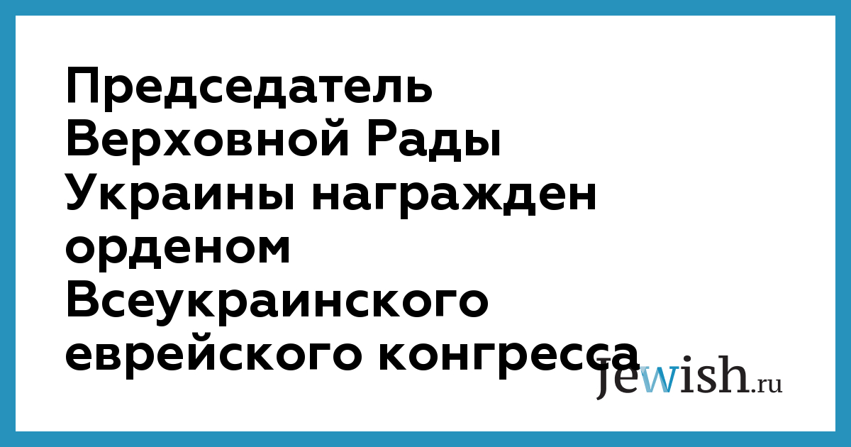 Председатель Верховной Рады Украины награжден орденом Всеукраинского еврейского конгресса