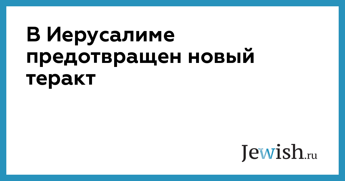 В Иерусалиме предотвращен новый теракт