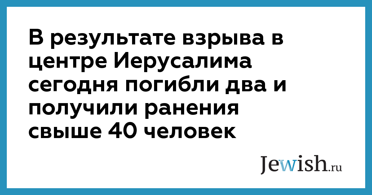 В результате взрыва в центре Иерусалима сегодня погибли два и получили ранения свыше 40 человек