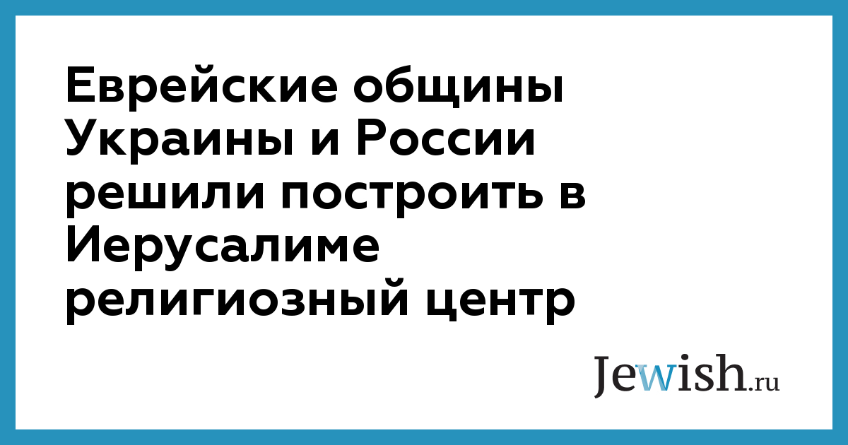Еврейские общины Украины и России решили построить в Иерусалиме религиозный центр