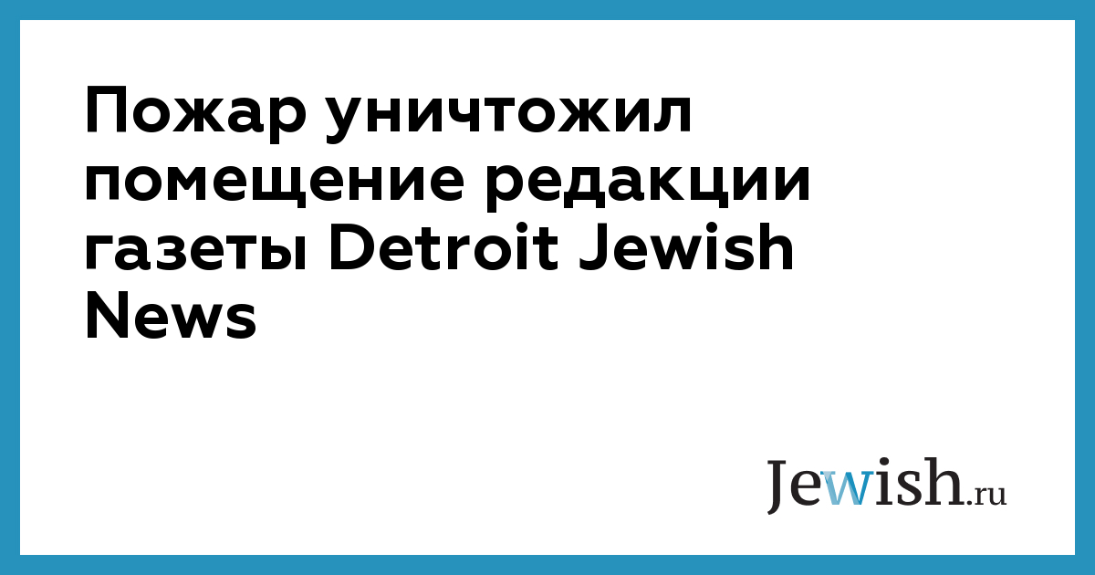 Пожар уничтожил помещение редакции газеты Detroit Jewish News