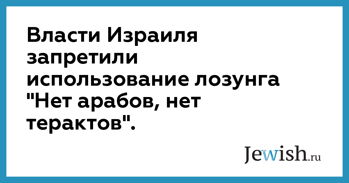 Власти Израиля запретили использование лозунга "Нет арабов, нет терактов".