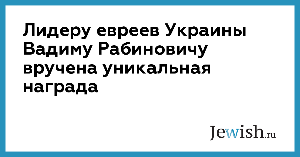 Лидеру евреев Украины Вадиму Рабиновичу вручена уникальная награда