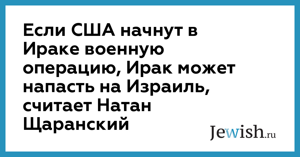 Если США начнут в Ираке военную операцию, Ирак может напасть на Израиль, считает Натан Щаранский