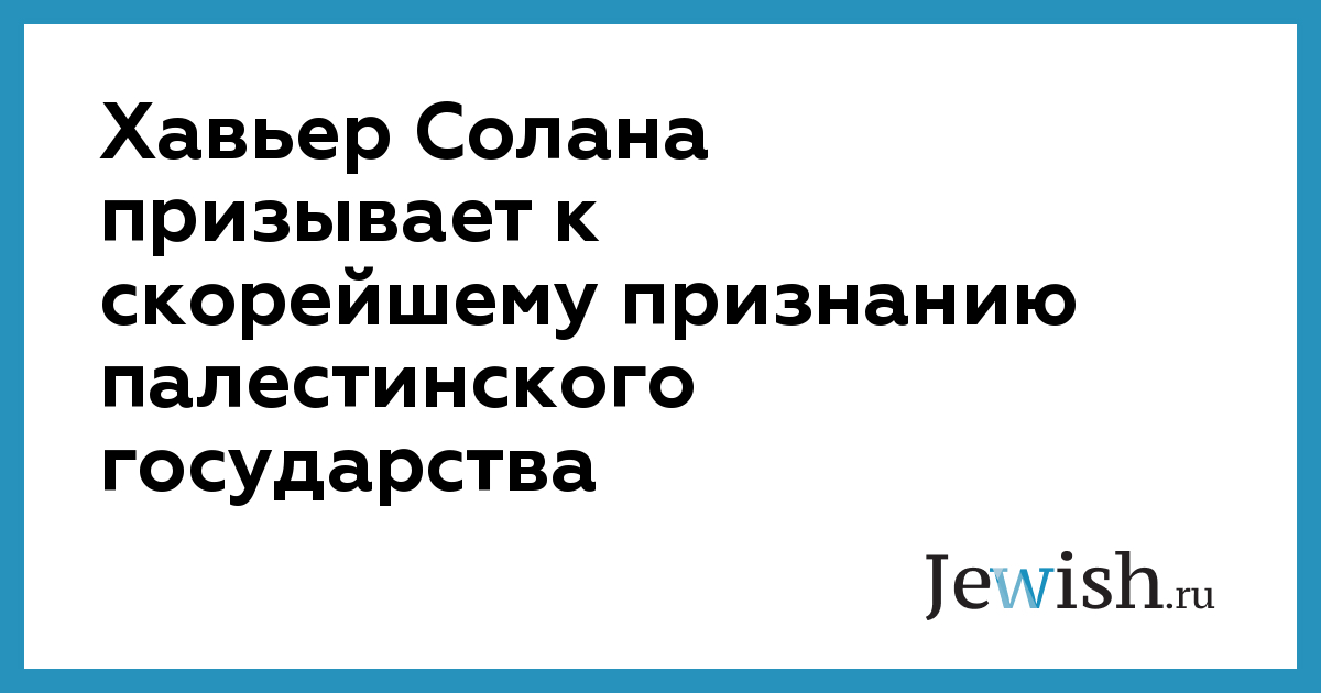 Хавьер Солана призывает к скорейшему признанию палестинского государства