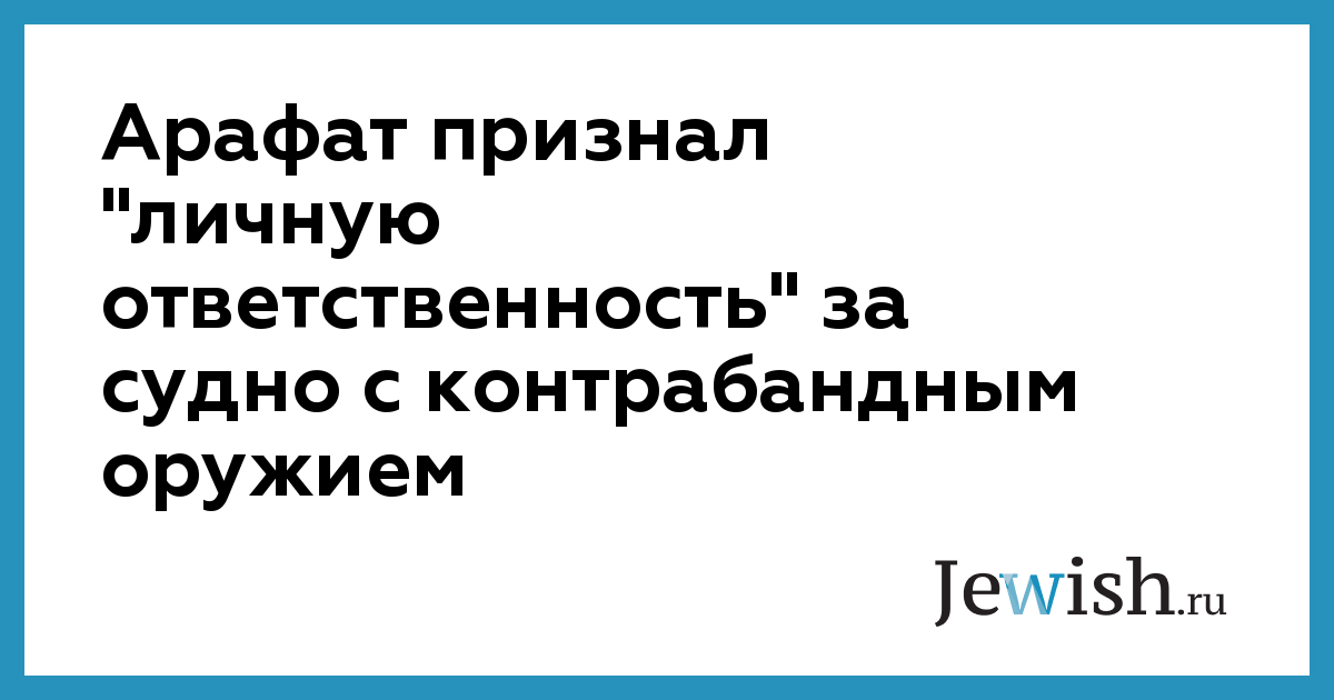 Глава палестинской автономии Ясир Арафат в послании президенту США Джорджу Бушу признал свою "личную ответственность" за инцидент с судном Karine А, на котором перевозилось контрабандное оружие. Об этом сообщила межарабская газета "Аль-Хаят". Судно было задержано израильтянами в Красном море в начале января. На его борту находилось оружие, предназначенное для палестинцев. Этот инцидент крайне осложнил попытки урегулирования палестино-израильского конфликта. 7 января Омар Окауи, капитан захваченного израильскими коммандос в Красном море судна Karine A, признал, что контрабандный груз оружия весом в 80 тонн предназначался для Палестинской национальной администрации. Приказ доставить груз в Палестинскую автономию он получил от представителя администрации Палестинской автономии в Греции Аделя Аудаллы. От него же он получил координаты места, где должен был сбросить груз. "Я ожидал проблем при прохождении Суэцкого канала, — сказал Окауи, — но никак не в Красном море". Захваченный арсенал включал 122-миллиметровые минометы (дальность 20 км), 107-миллиметровые минометы, противотанковые ракеты, автоматы Калашникова, взрывчатку и подводное снаряжение.