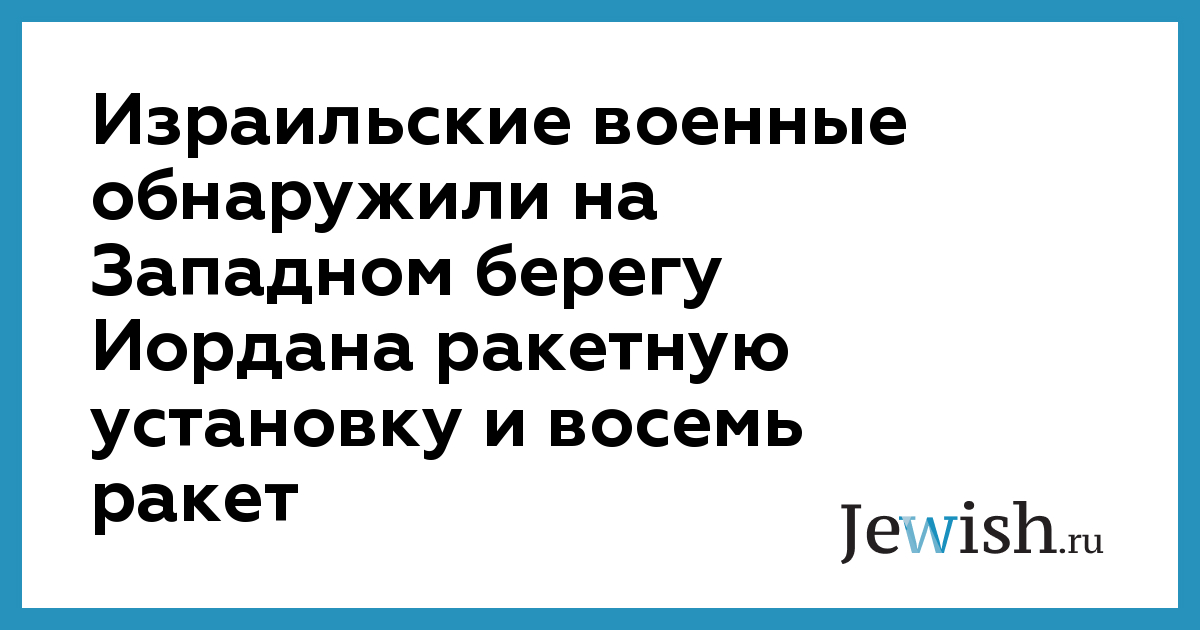 Израильские военные обнаружили на Западном берегу Иордана ракетную установку и восемь ракет