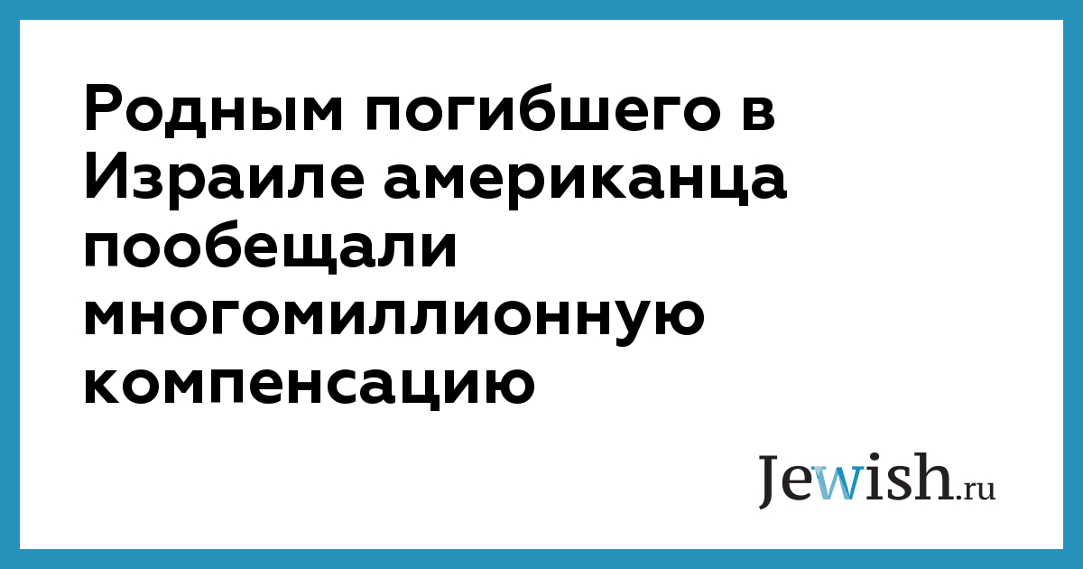 Родным погибшего в Израиле американца пообещали многомиллионную компенсацию