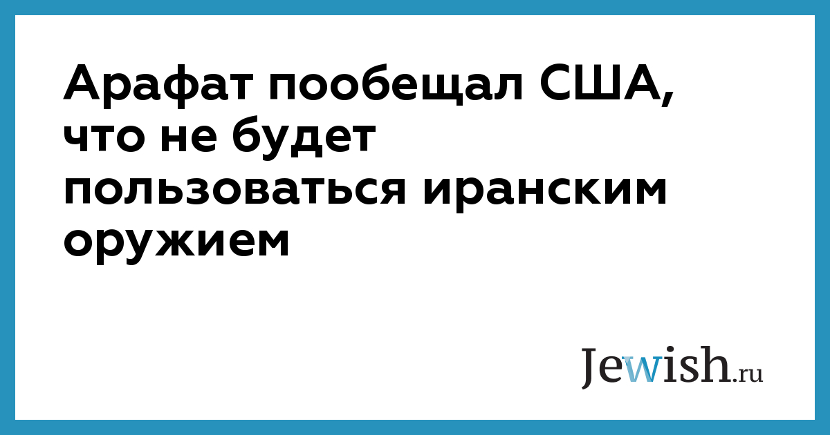 «В письме Арафат также заявил, что ПНА не будет вступать с Ираном в сделки на поставки оружия и не имеет связи подобного рода в настоящее время», — сообщил источник.