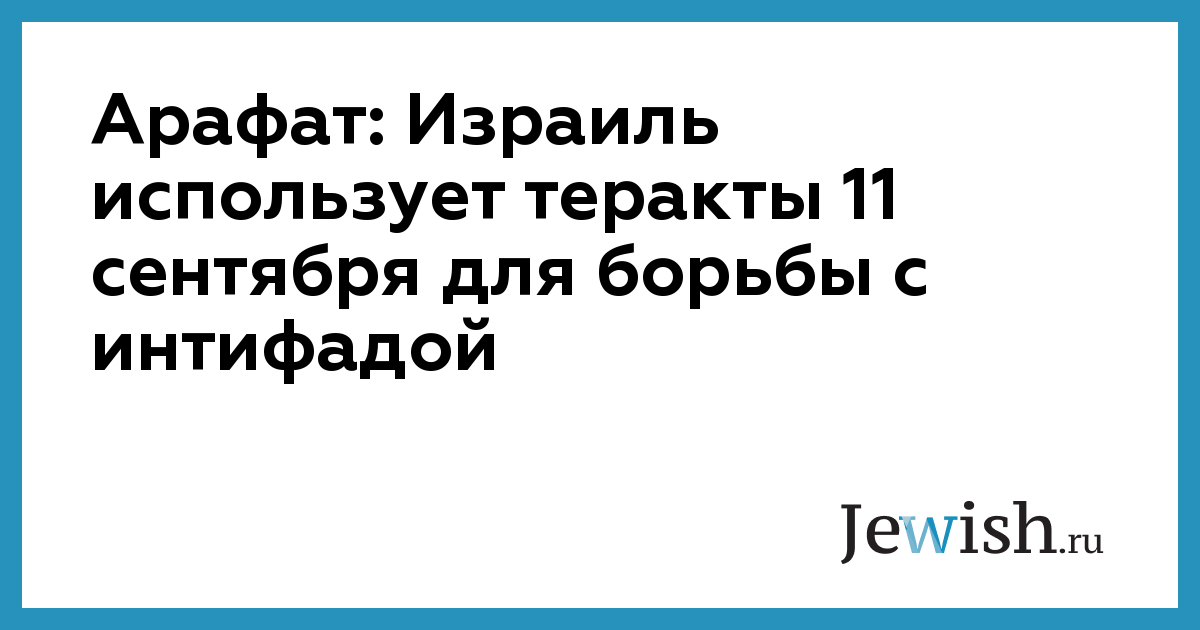 Израиль использует теракты 11 сентября прошлого года в Нью-Йорке и Вашингтоне "в свою пользу для борьбы с палестинской интифадой". Об этом заявил во вторник глава ПНА, председатель исполкома ООП Ясир Арафат в интервью ливанской газете "Ан-Нахар". События 11 сентября изменили все мировые и, прежде всего, американские приоритеты, отметил глава ПНА. США после них объявили войну против террора и создали военно-политическую коалицию на международном уровне. Израильское правительство Ариэля Шарона, продолжил Арафат, использовала это "землетрясение", обрушившееся на США для того, чтобы задушить восстание палестинского народа путем эскалации военных действий против палестинцев под предлогом борьбы с терроризмом. За период "интифады", с сентября 2000 года, погибли 256 израильтян. Тем не менее, отметил Арафат, палестинский народ выстоял и доказал, что "бессмысленно навязывать ему израильское военное решение проблем или заставить его подчиниться". "Применение военной силы против гражданского населения, — подчеркнул глава ПНА, — не обеспечит безопасности израильтян. Напротив, это ставит под угрозу стабильность и безопасность во всем регионе".