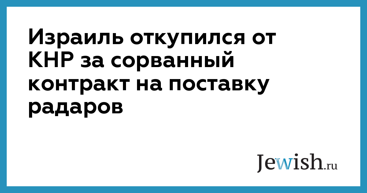 Израиль откупился от КНР за сорванный контракт на поставку радаров