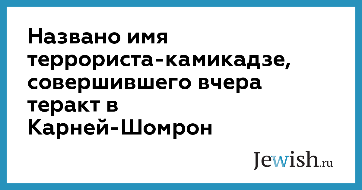 Названо имя террориста-камикадзе, совершившего вчера теракт в Карней-Шомрон