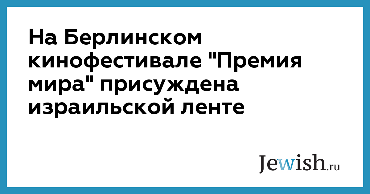 На Берлинском кинофестивале "Премия мира" присуждена израильской ленте