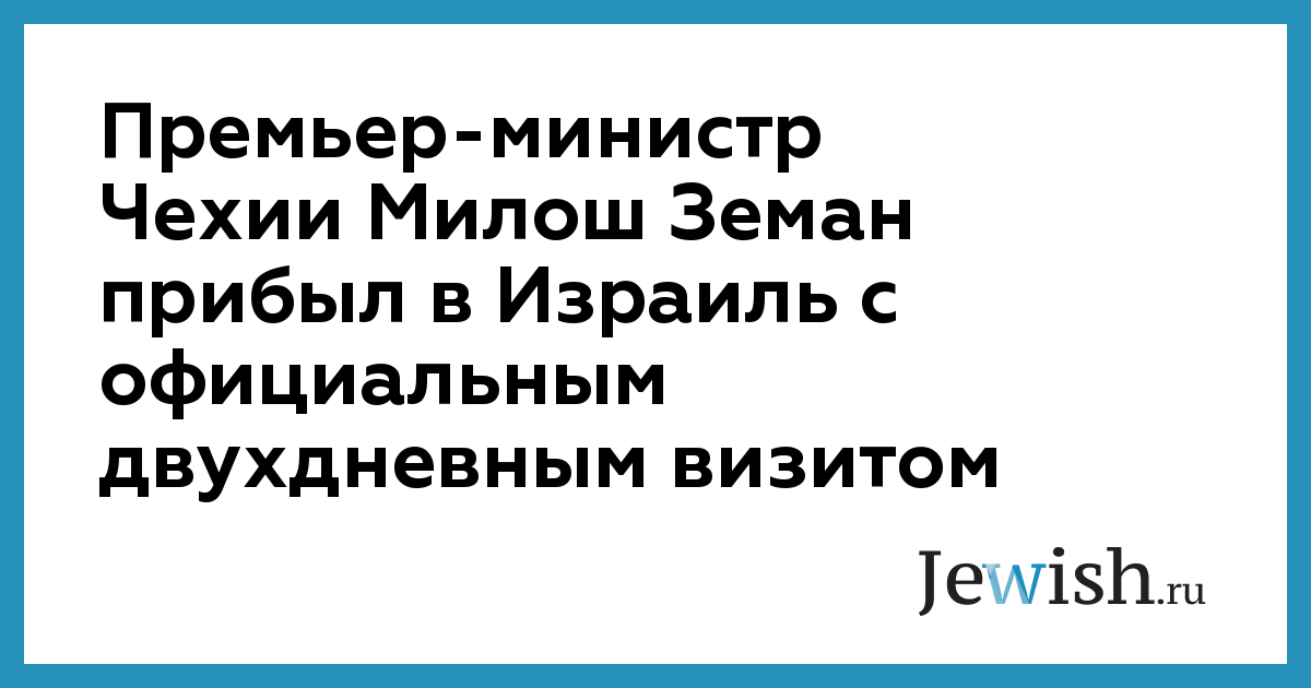 Премьер-министр Чехии Милош Земан прибыл в Израиль с официальным двухдневным визитом
