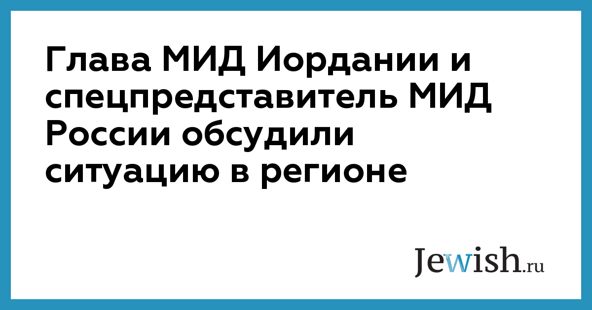 Глава МИД Иордании и спецпредставитель МИД России обсудили ситуацию в регионе