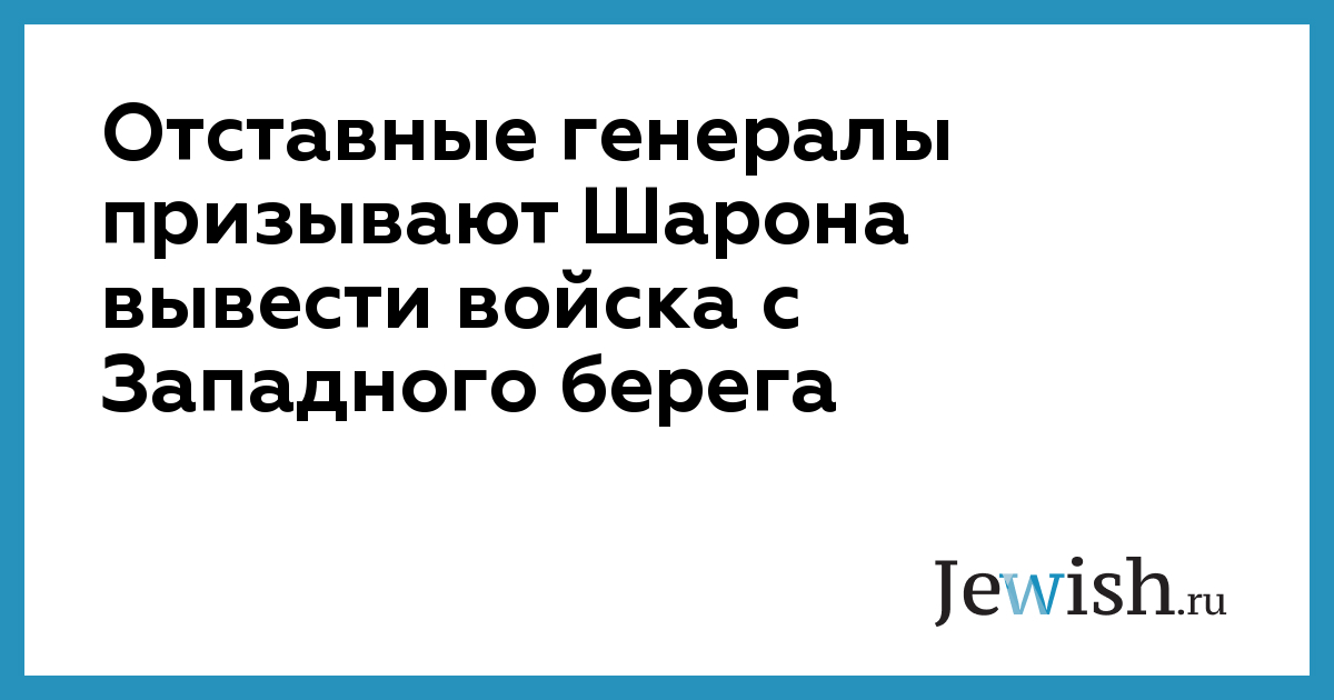 Отставные генералы призывают Шарона вывести войска с Западного берега