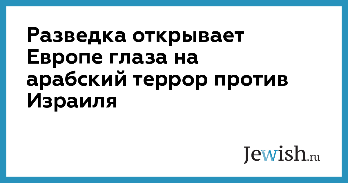 Разведка открывает Европе глаза на арабский террор против Израиля