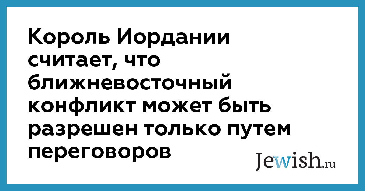 Король Иордании считает, что ближневосточный конфликт может быть разрешен только путем переговоров