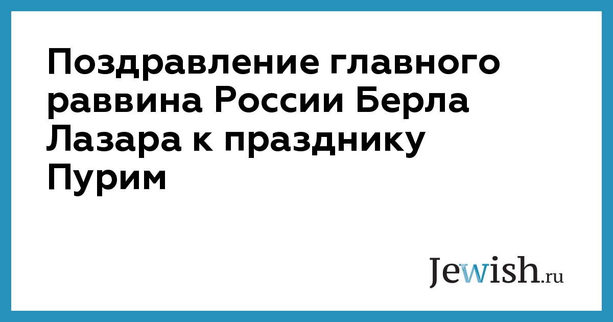 Поздравление главного раввина России Берла Лазара к празднику Пурим