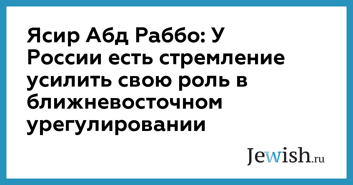 Ясир Абд Раббо: У России есть стремление усилить свою роль в ближневосточном урегулировании