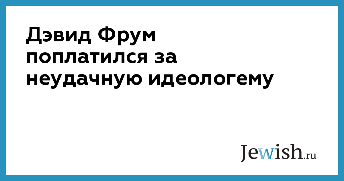 Дэвид Фрум поплатился за неудачную идеологему