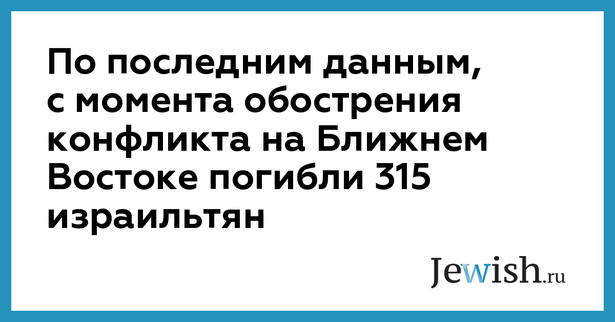 По последним данным, с момента обострения конфликта на Ближнем Востоке погибли 315 израильтян