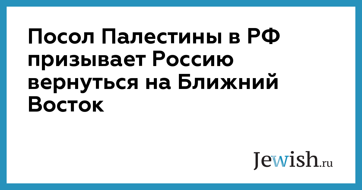Посол Палестины в РФ призывает Россию вернуться на Ближний Восток