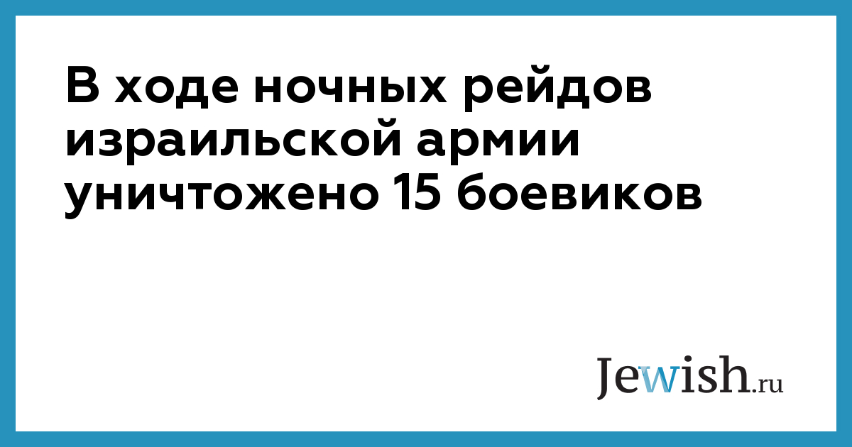 В ходе ночных рейдов израильской армии уничтожено 15 боевиков
