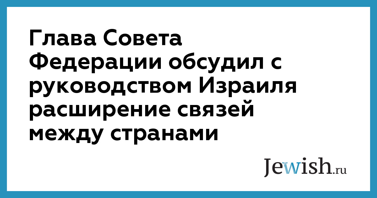 Глава Совета Федерации обсудил с руководством Израиля расширение связей между странами